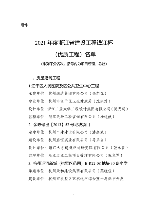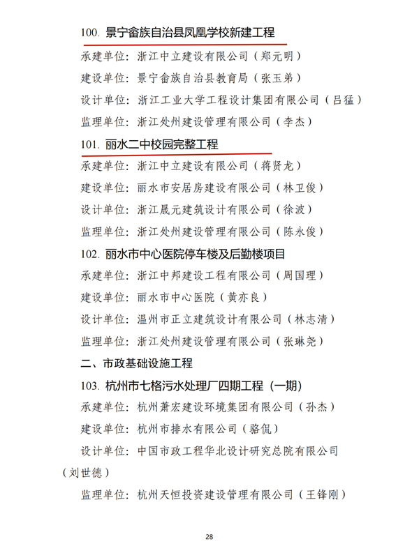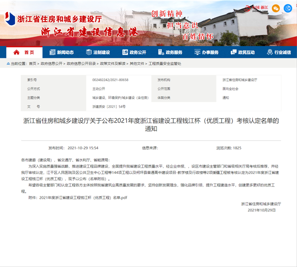 根據《浙江省住房和城鄉建設廳關于公布2021年度浙江省建設工程錢江杯(優質工程)考核認定名單的通知》,我公司承建的景寧畬族自治縣鳳凰學校新建工程、麗水二中校園完整工程2個項目榮獲2021年度浙江省建設工程錢江杯(優質工程)。錢江杯(優質工程)是浙江省工程建設領域的最高質量獎項,代表了浙江省建筑業工程質量的最高水平。